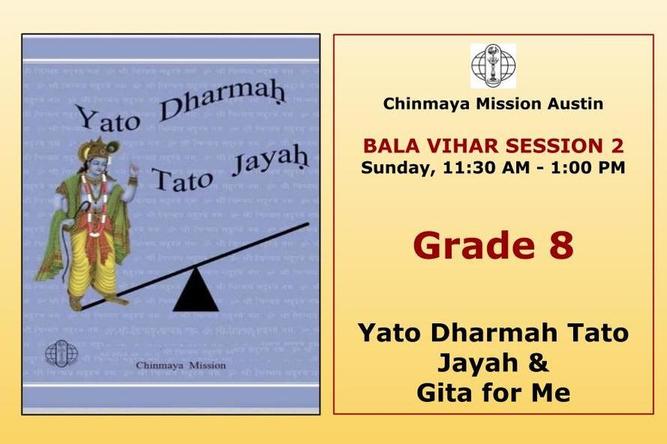 2025-26 BV Session 2 - Grade 8Yato Dharmah Tatoh Jayah + Mahabharata Characters, Gita for Me