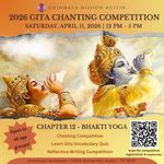 The annual Bhagavad Gita Chanting Competition (GCC) serves as a vehicle for inspiring and motivating children and adults to learn, memorize and assimilate the sacred verses of the Srimad Bhagavad Gita. In keeping with Pujya Gurudev's vision and mission, GCC helps sow the seed of Gita Jnana in every participant. This year, Chapter XII: Bhakti Yoga – The Yoga of Devotion, has been selected for all of us to learn to chant. Competition details, including competition categories, age groups and verse assignments can be found on the CMA Gita Chanting webpage: https://chinmayaaustin.org/gcc_comp-signup.html